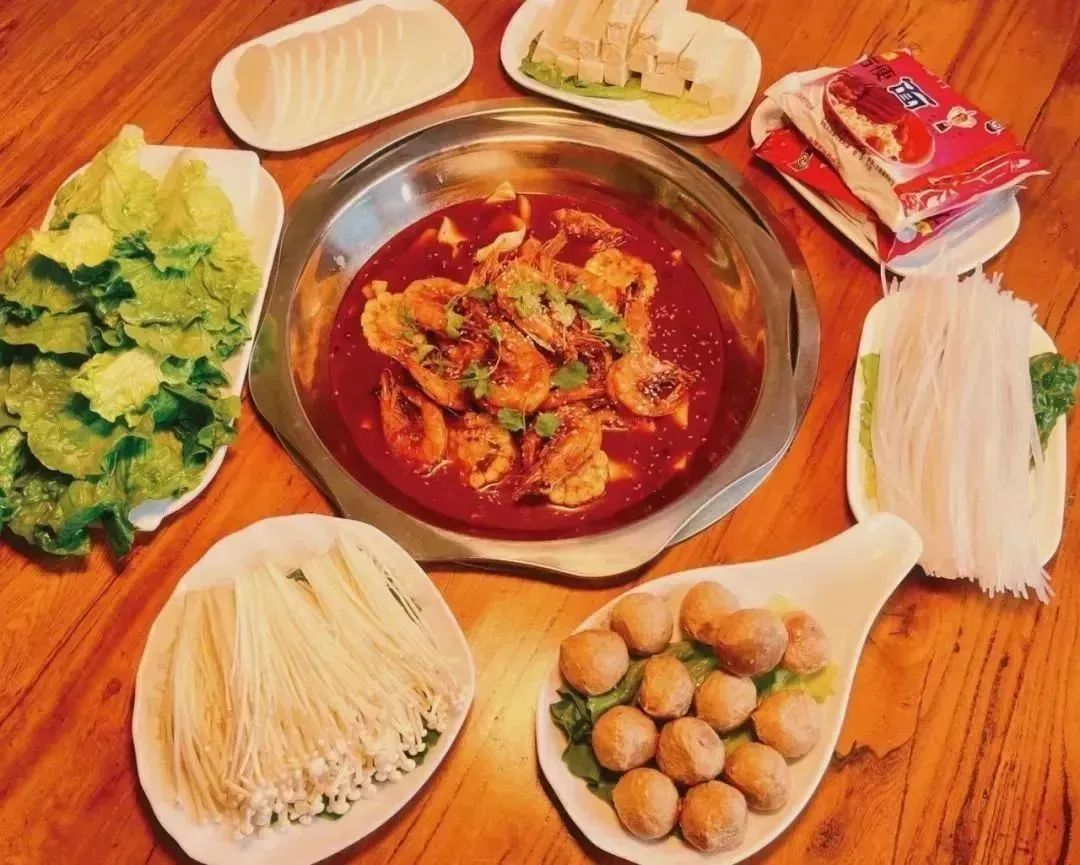 锅底的配菜可别浪费在你肆意吃虾的时候