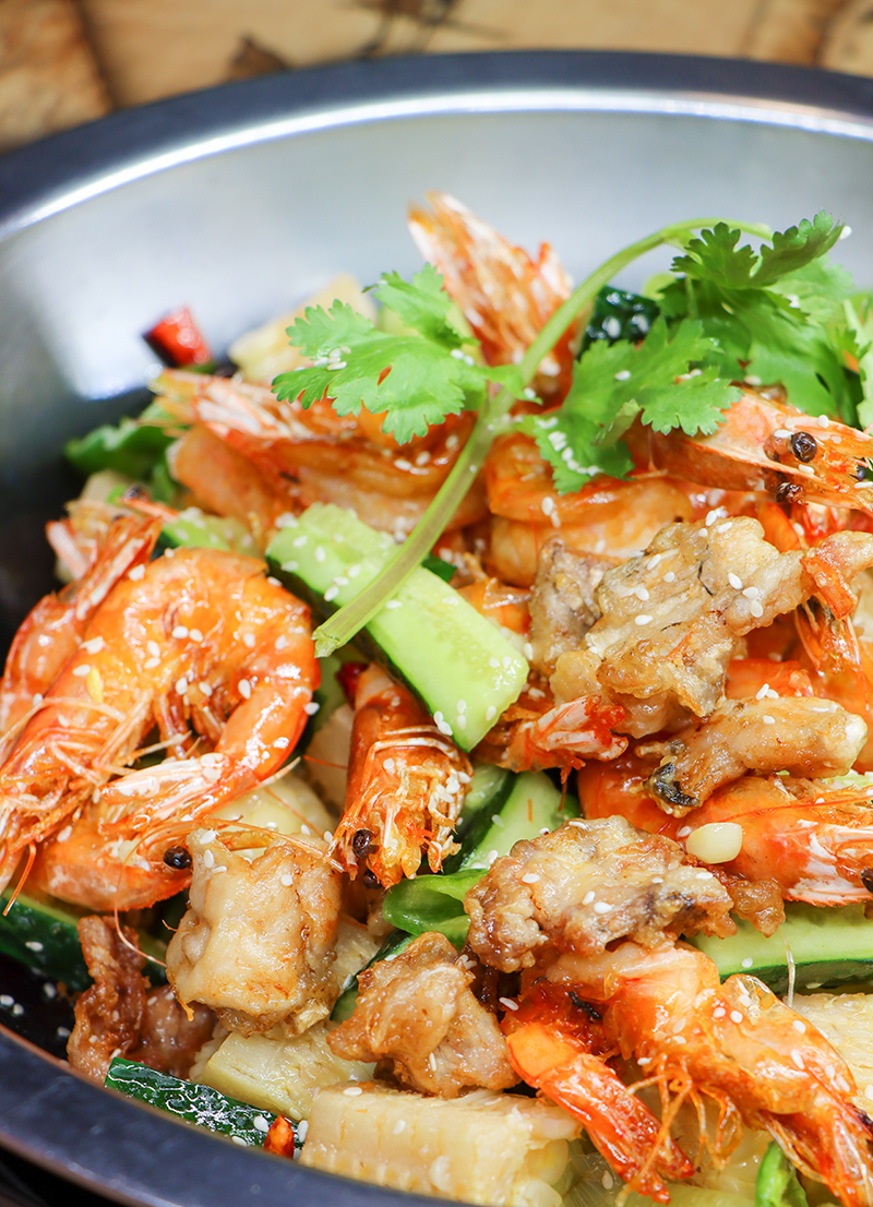 炒过的牛蛙,酥脆的外表下隐藏着紧实嫩白的肉,