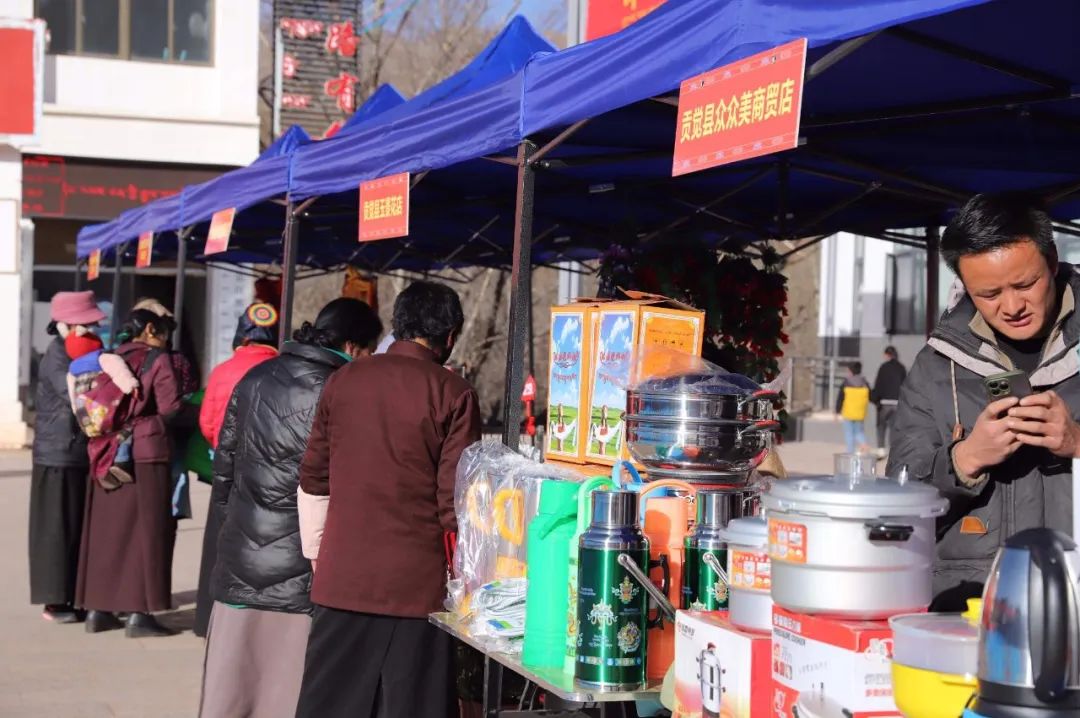 据了解,此次物资交易会暨年货节有来自全县各乡镇25家商户企业参加。展区内不仅有阿旺绵羊、酥油糌粑、米面粮油、年货食品等产品还有唐卡、民族手工艺等非遗产品的展销,更有人民医院义诊活动及“助企惠民•乐购贡觉”的消费劵发放,丰富多彩的形式全面提升了干部群众购买年货的体验度、获得感、满意度。