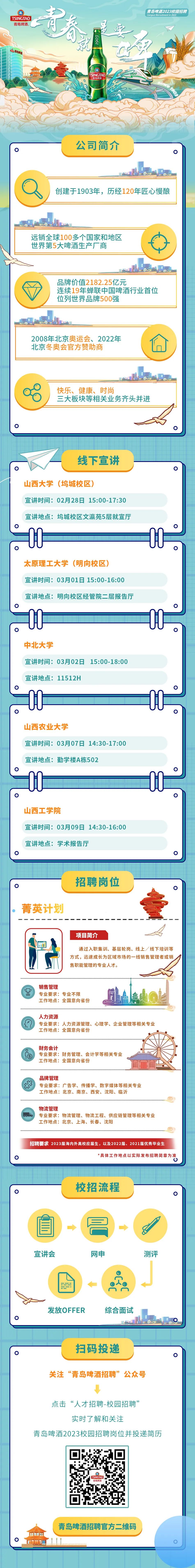 青春就是要啤-青岛啤酒(山西)2023“菁英计划”春季校园招聘全面开启