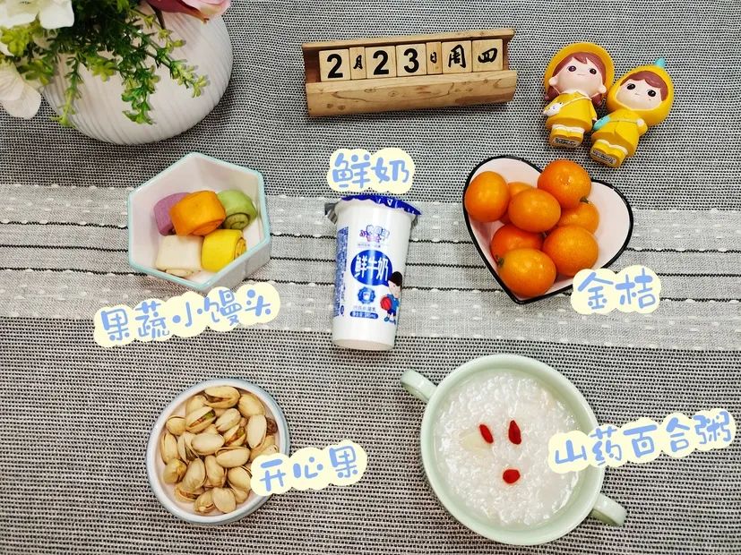 红糖发糕、绿豆百合汤
