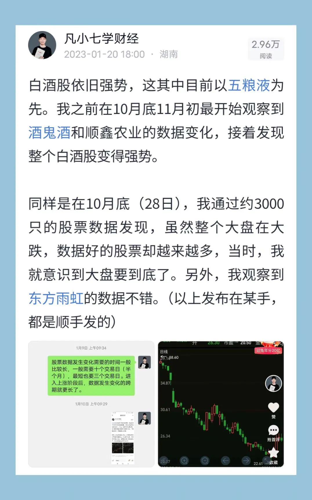 为什么说只要他们看明白了这个内容,就一定不会提“我是不是被打脸了”这样的问题呢?看一下这个截图里面的内容,里面说的是2022年的10月底、11月初,我第一次提出白酒股将要转强。