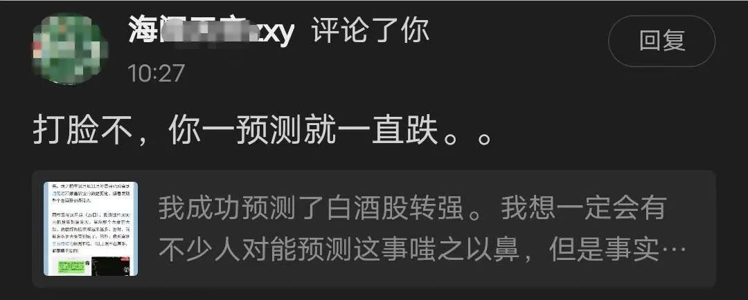 这两天白酒股在下跌回调,有少部分人,就跑来趾高气扬的说,“你被打脸了吧,刚说上涨它就下跌,这不是被打脸是什么呢?别死不承认了!”。