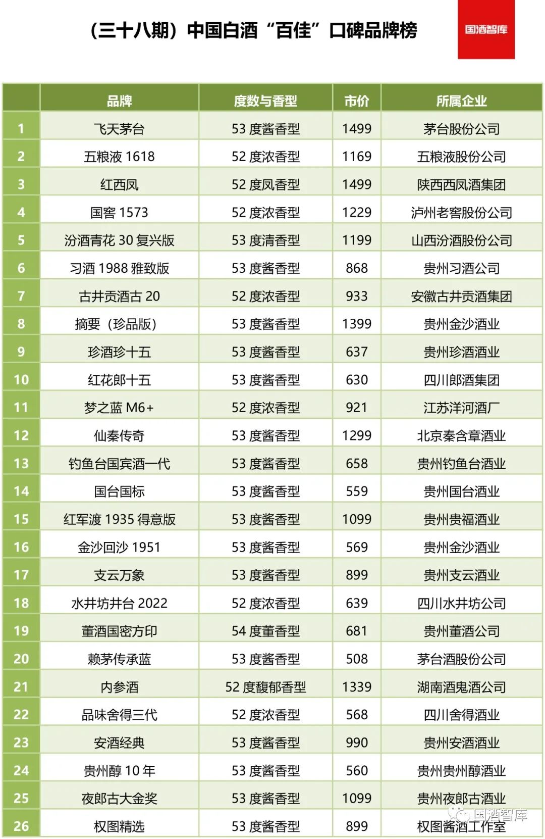 国酒智库每个月对中国上千个白酒品牌不完全统计和品鉴显示,推出《中国白酒“百佳”口碑品牌榜》。