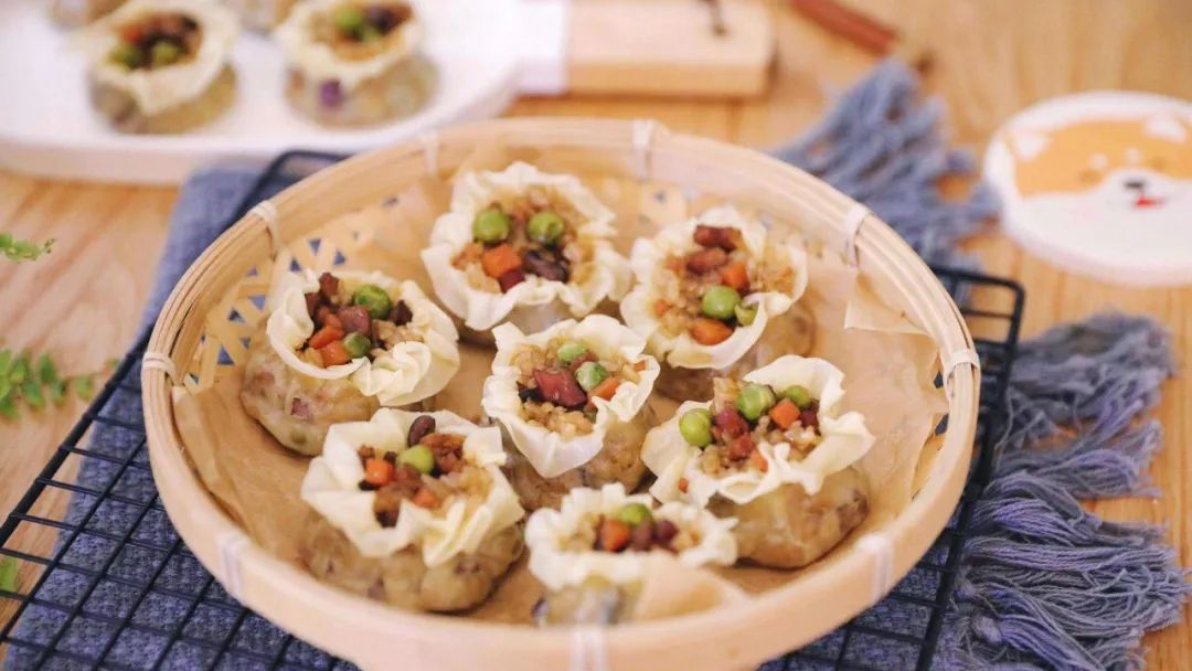 烧麦(小麦粉55克、胡萝卜5克、猪肉40克、糯米50克)