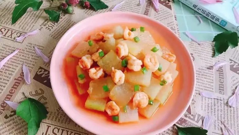 虾仁烧冬瓜(虾仁20克、冬瓜70克)