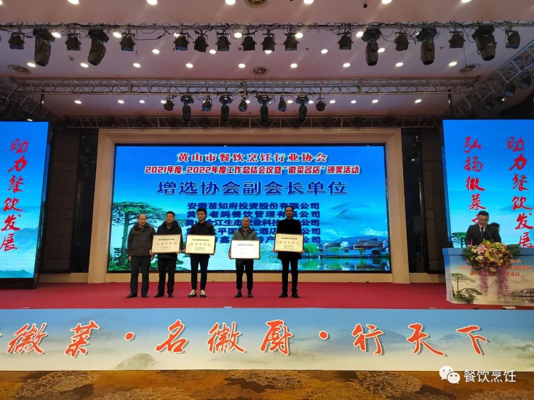 2月27日,黄山市餐饮烹饪行业协会在屯溪隆重召开2022年度工作总结大会,总结2021、2022年工作,审议增选市餐饮烹饪行业协会副会长提案,审议市餐饮协会2022年度财务审计报告,举行中国徽菜之乡徽菜名店授牌,展望部署2023年徽菜发展工作。