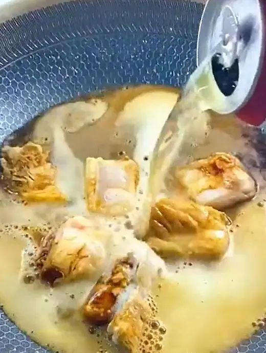 然后再倒入少许清水,再倒入一罐啤酒,盖盖煮30分钟左右