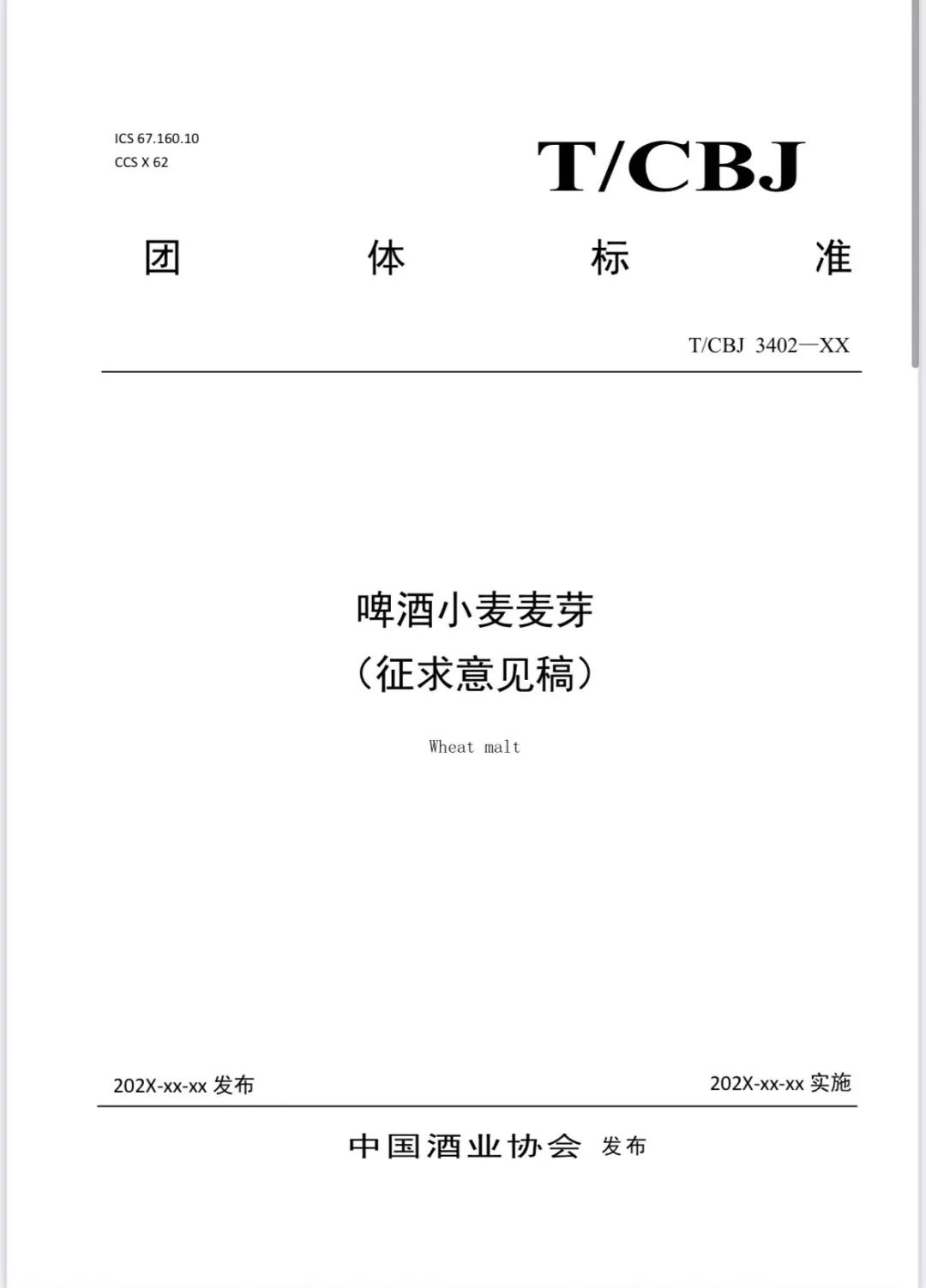 2月10日,由中国酒业协会团体标准审查委员会批准,北京燕京啤酒股份有限公司牵头制定的T/CBJ 3401《啤酒小麦》、T/CBJ 3402《啤酒小麦麦芽》团体标准已完成征求意见稿,现公开征求意见。新团标内对啤酒酿造的小麦和小麦麦芽进行了新的规定,包括啤酒小麦麦芽的术语和定义、产品分类、要求、分析方法、检验规则、标志、包装、运输和贮存。适用于啤酒小麦、小麦麦芽的采购、检验和销售。