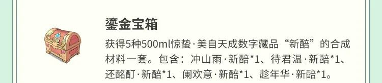 与立春和雨水活动的区别,在于现在是100%获得一整套材料(除了基酒),之前是100%获得3个碎片和一定概率获得水滴(其实概率也很大,基本上人均都可以获得2个水滴)。
