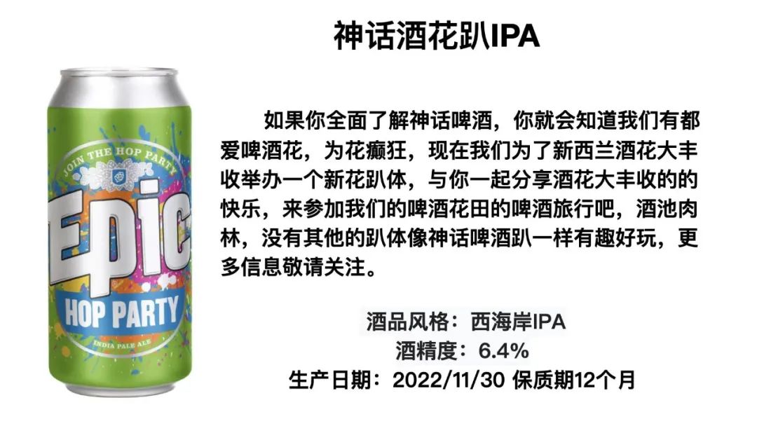 神话自2015 年进入中国 ,品牌主理人老杰克也是真心想带给酒友们最好的IPA体验,一直在挑战新鲜度 。这次坐着✈️飞机来的神话酒款可是厉害了!2月10日罐装,330ml,未满月的神话“酒花僵尸”来了,生产日期超级新鲜。下单6罐还可以获得啤酒事务局独家的神话徽章(价值48元),想要感受新西兰酒花爆炸香气的IPA爱好者,赶紧冲!