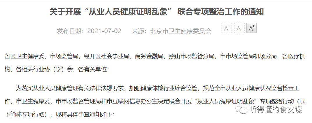 1,关于开展“从业人员健康证明乱象” 联合专项整治工作的通知