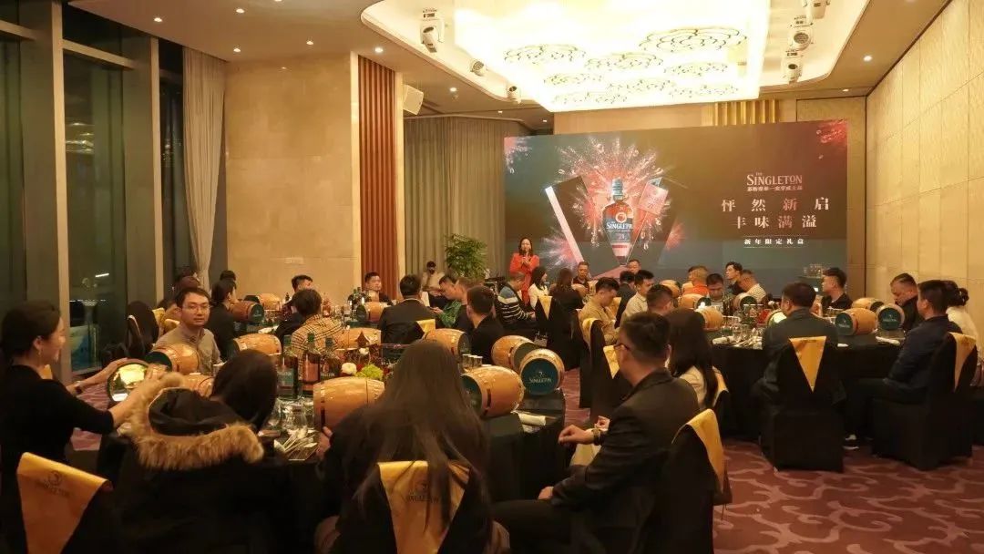 2023年02月24日晚,由银宽酒业与帝亚吉欧携手打造苏格登丰味之夜,迎各界领域精英、企业家齐聚一堂,在深圳利宝阁嘉里店共同举办的一场“怦然新启,风味满溢”威士忌客户答谢晚宴圆满落幕。