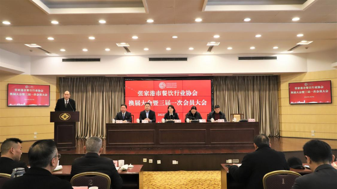 为促进我市餐饮行业高质量发展,张家港市餐饮行业协会换届大会暨第三届一次会员大会于2月27日下午在沙洲宾馆召开。30余家餐饮行业协会会员单位参加会议,市商务局副局长张玲、市市场监管局副局长陆翠珍到会祝贺。