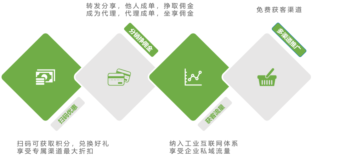 产品活动发布,新品发布,消费积分,扫码购买,给消费者更多优惠,增加粘合度。