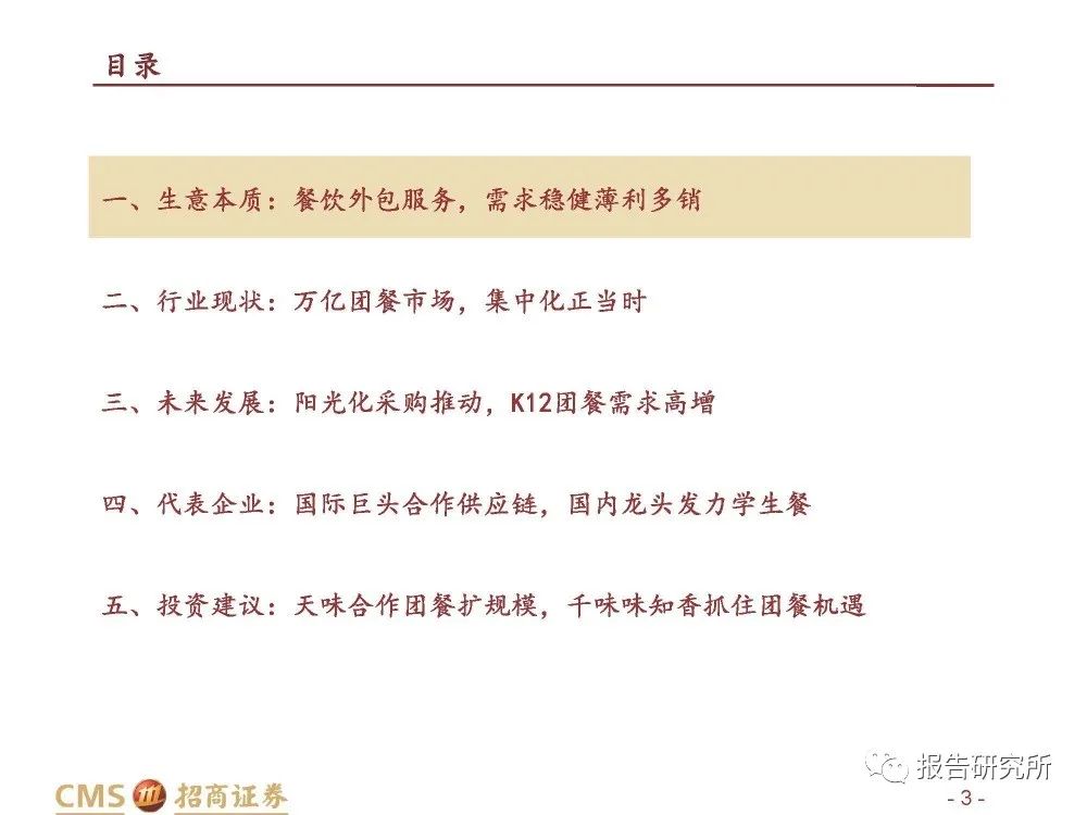 一、生意本质:餐饮外包服务,需求稳健薄利多销