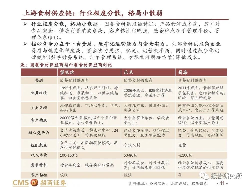 团餐企业掌握下游客户资源,更具优势。相比纯供应链企业,团餐企业作为餐饮公 司掌握下游客户资源,更有利于开展供应链业务,即可满足自身需求,也能服务于 其他餐饮业态。