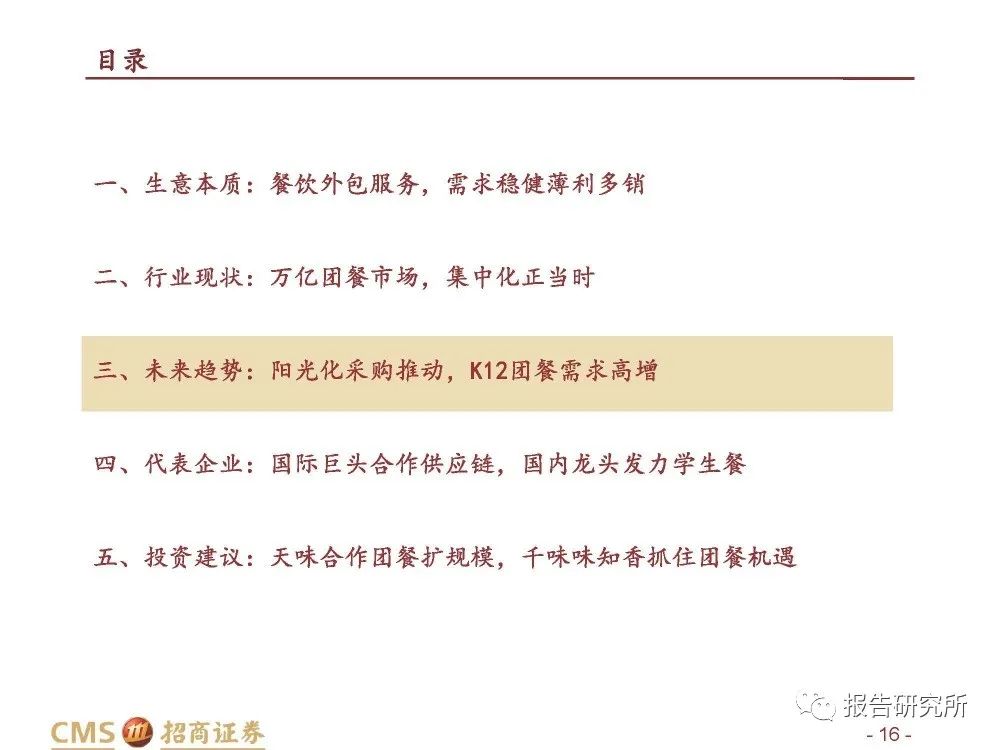三、未来趋势:阳光化采购推动,K12团餐需求高增