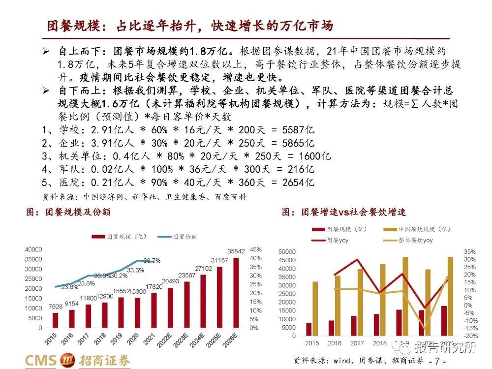 团餐规模:占比逐年抬升,快速增长的万亿市场