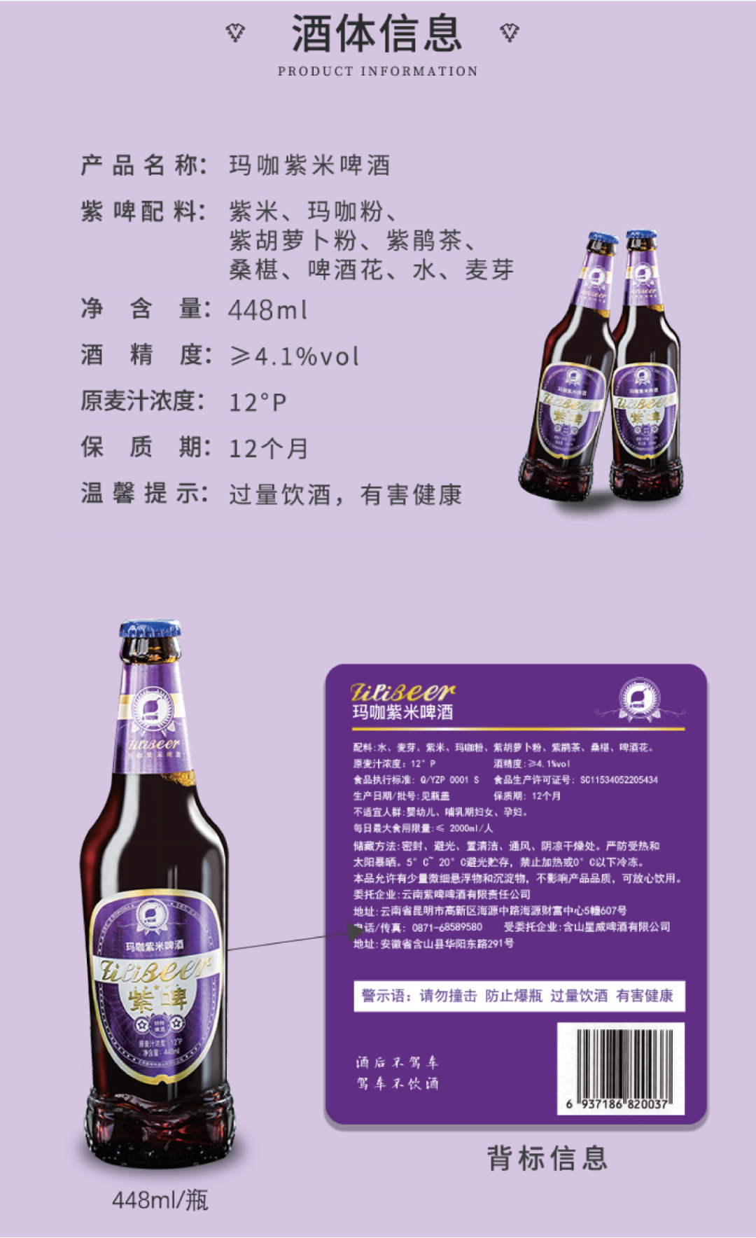玛咖紫米啤酒(瓶装12°p)1*12/448ml