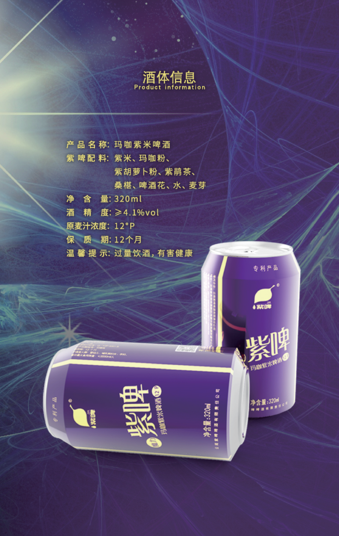 玛咖紫米啤酒魅力(听装12°p)1*12/328ml