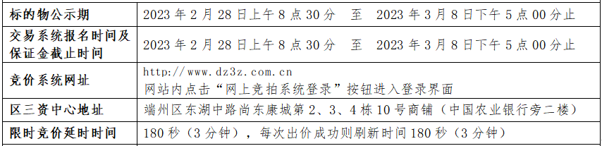 限时竞价开始时间 | 2023年3月9日15点30分开始 |
