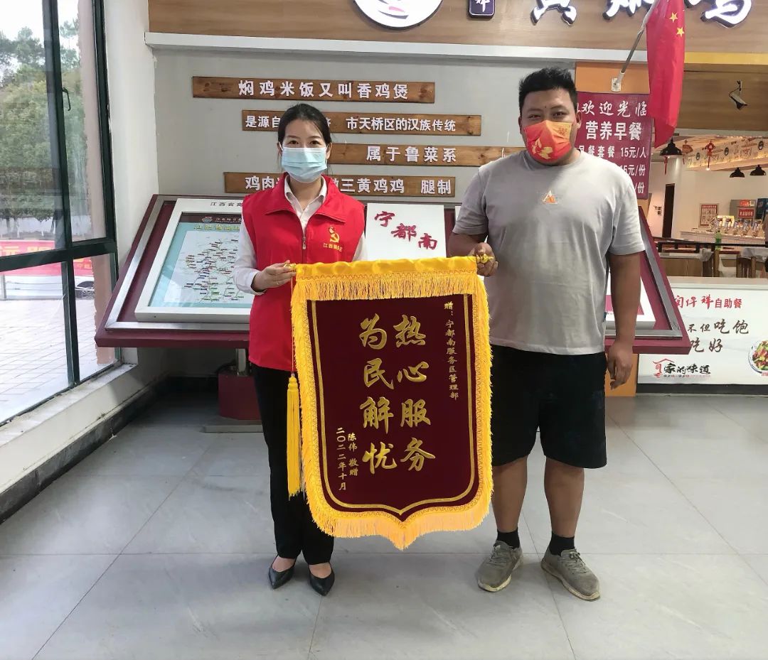 也有人赞她“热心服务,为民解忧”。2022年10月1日正值国庆假期,车流人流量增大,晚上10点多,严子楠还在巡查。这时,一位司乘致电给她,十分焦急地表示自己的包不慎掉落在服务区餐厅,那是儿子特意打暑假工买来送给他的,意义非凡。得知这个消息,严子楠立马赶到现场,很快在餐桌底下将其找回,并归还给司机。事后,司机再次路过服务区时,特意送来了一面写有这八个大字的锦旗以示感谢。