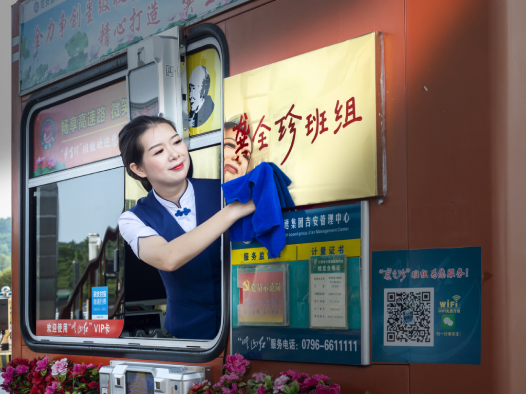 2013年,严子楠在井冈山收费站实习,成为了“映山红”班组的一员。“在这里,班组成员间友爱互助让我倍感温暖,尤其是她们身上的那股干劲更促使我飞速成长。”严子楠回忆道。