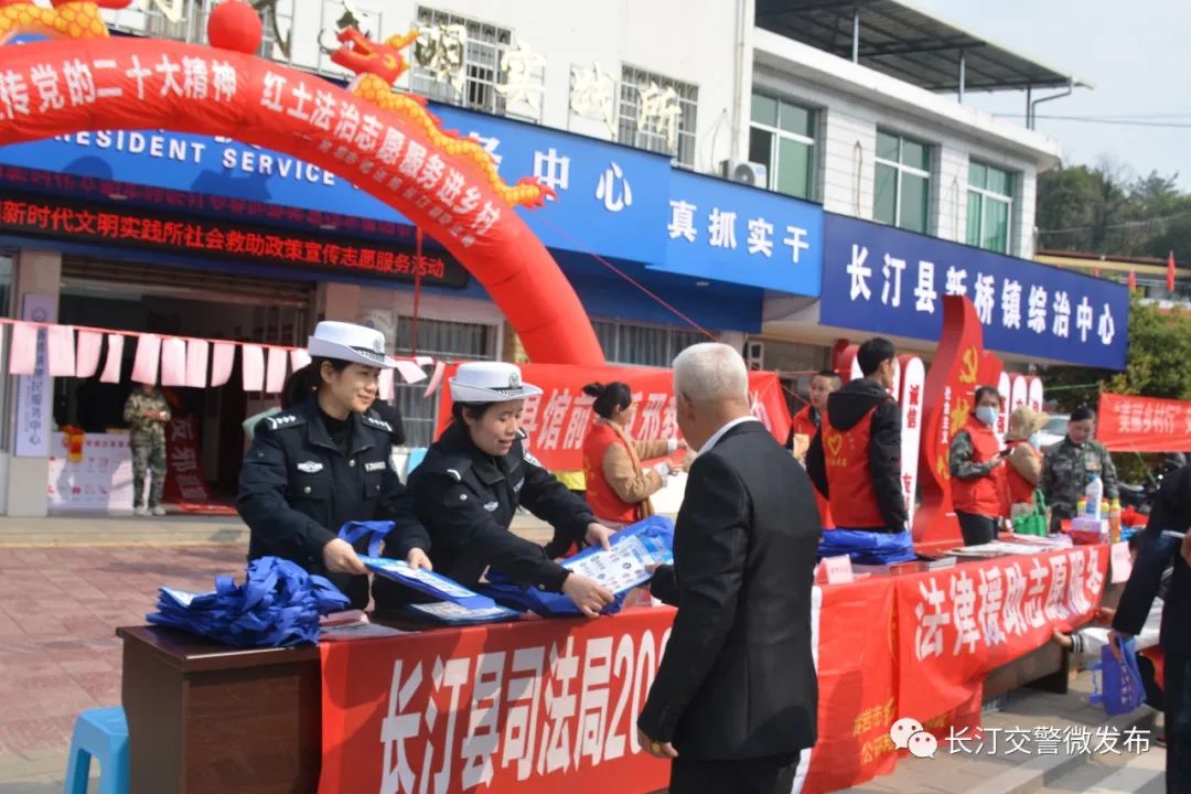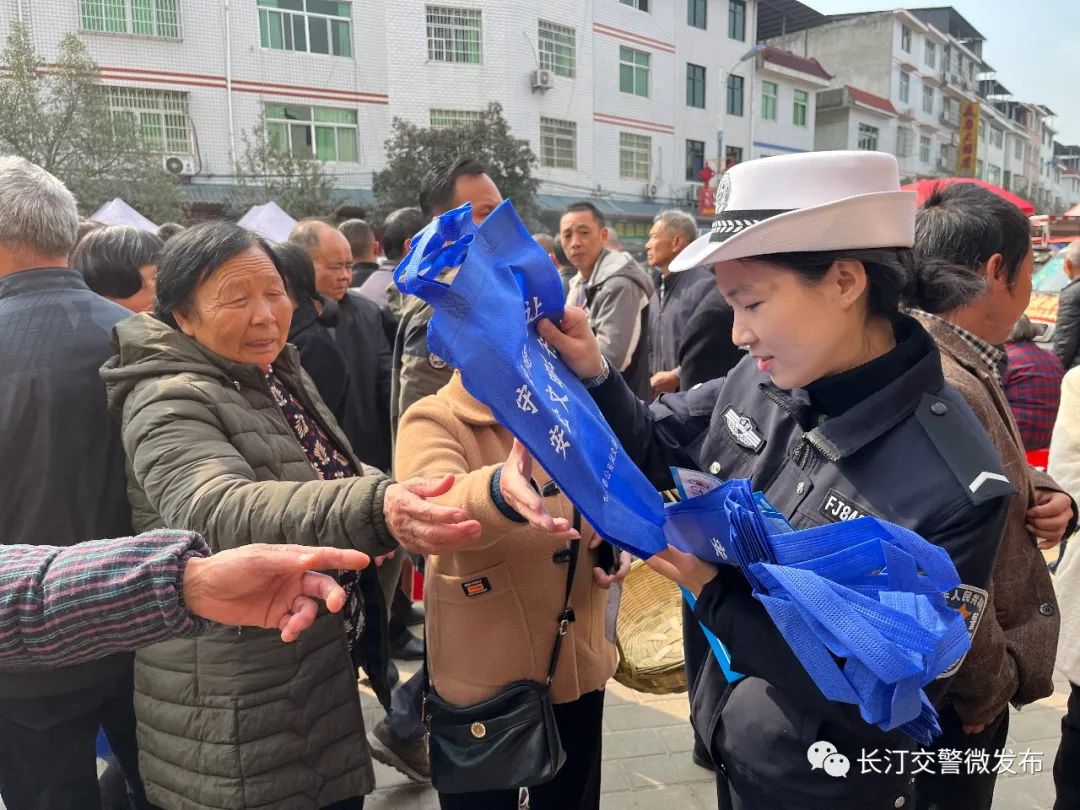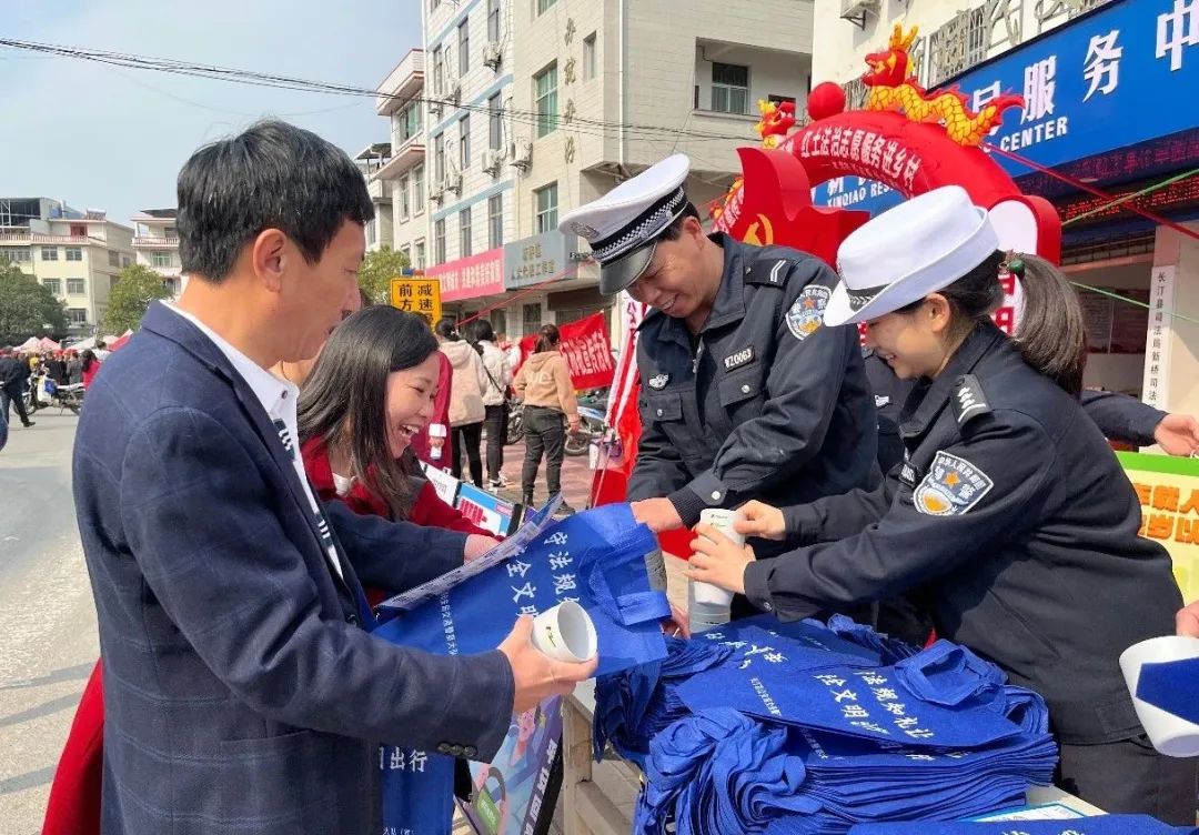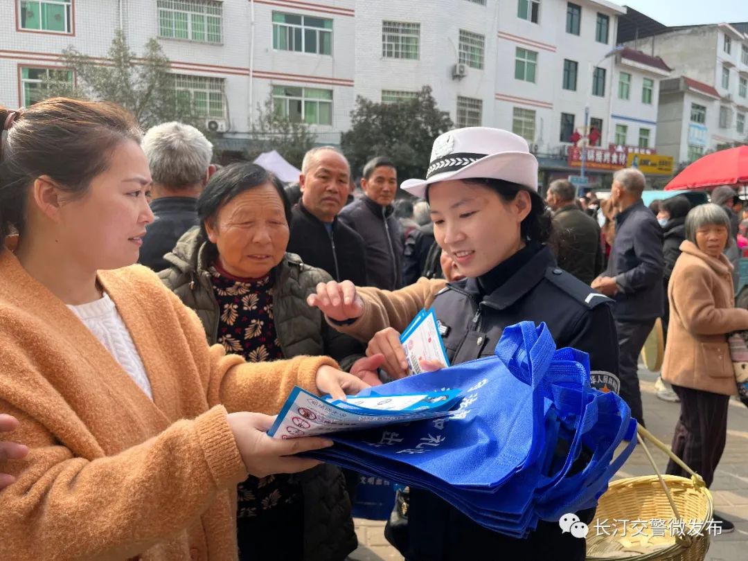为了全面提高辖区内群众交通安全出行意识,预防和减少道路交通事故发生,2月24日(农历二月初五),长汀交警巧借新桥镇传统农资交易会,抓住群众大量聚集的有利时机,组织民辅警深入新桥镇集市,向群众宣传道路交通安全法律法规知识常识。
