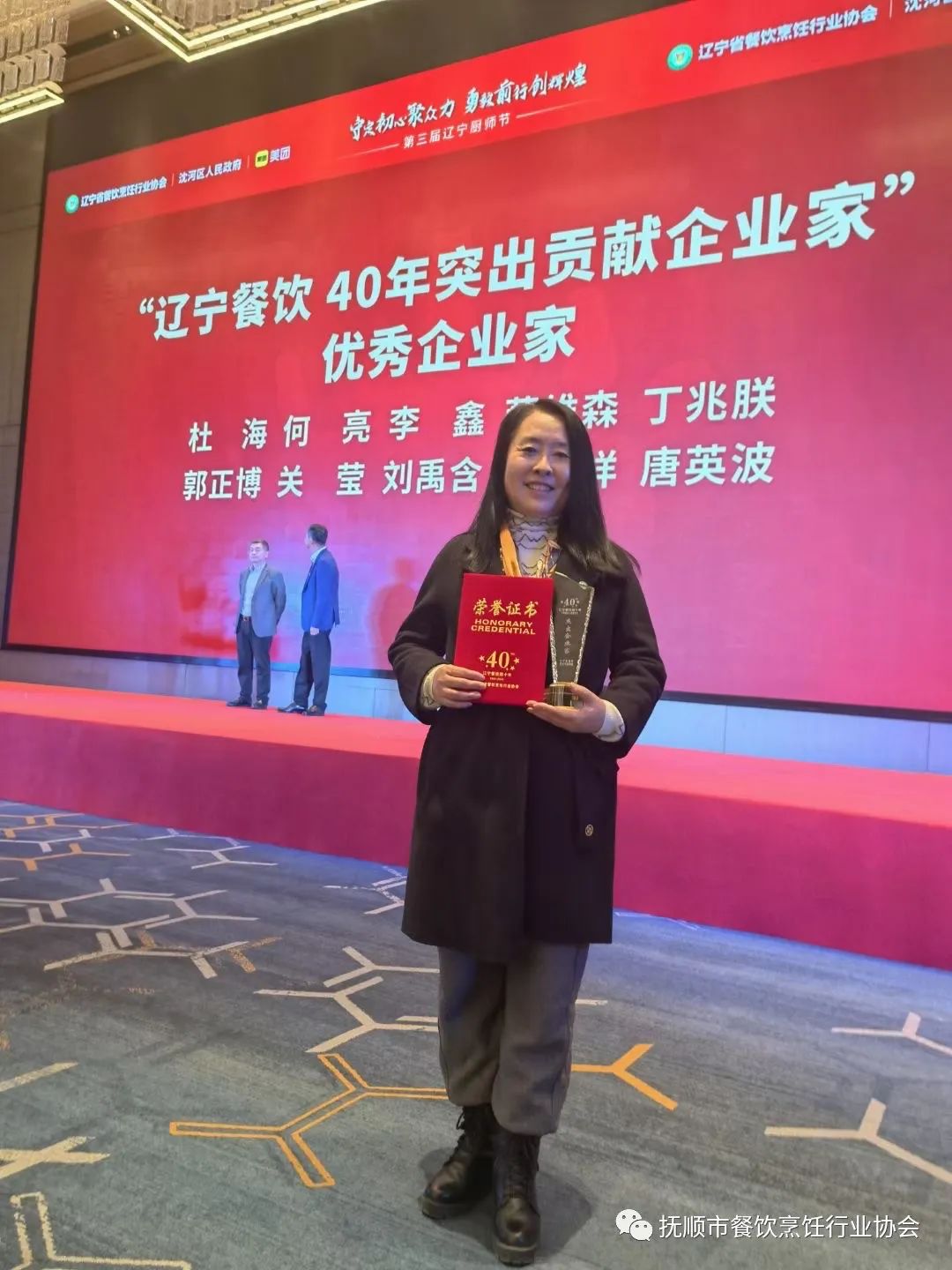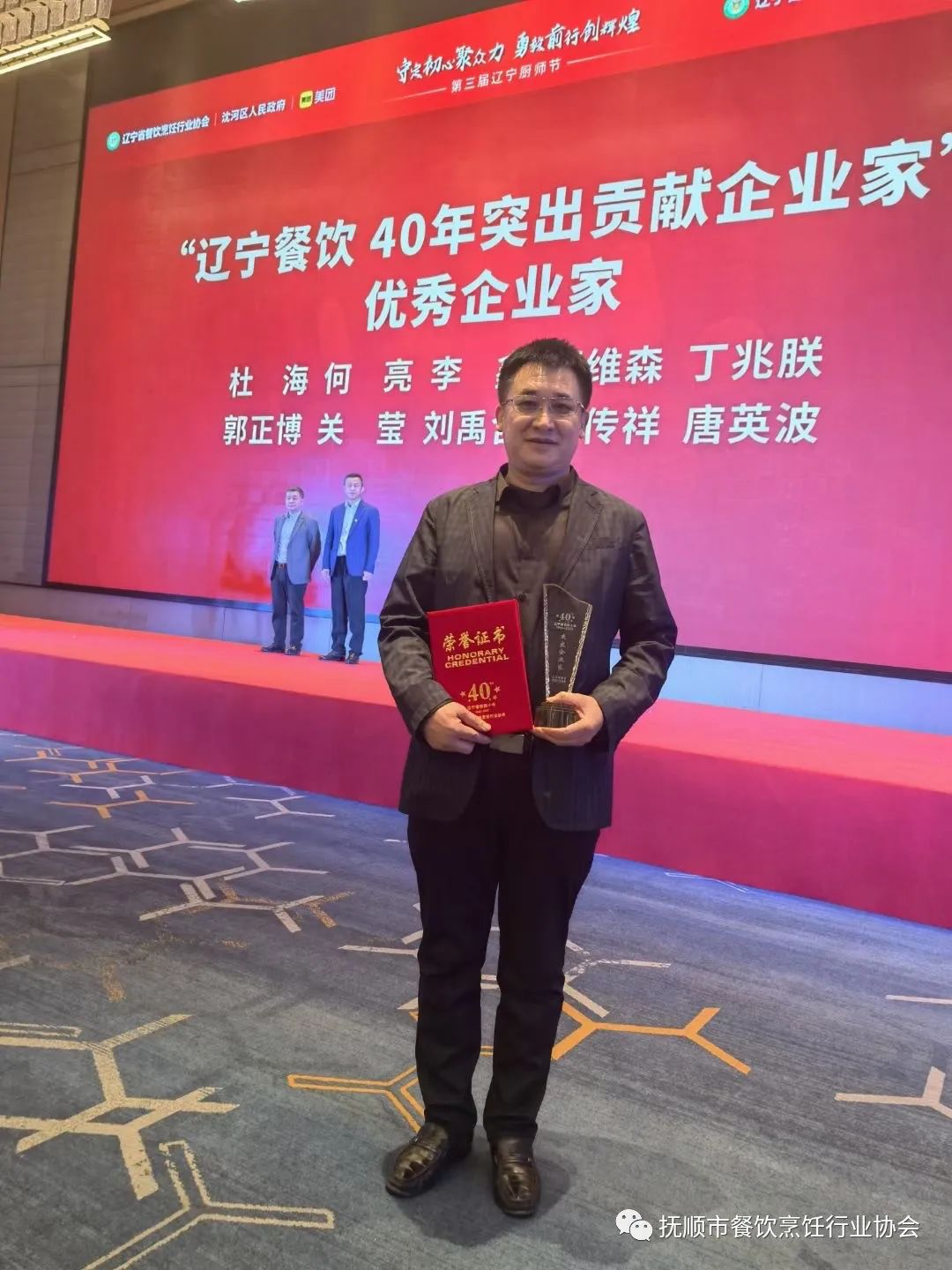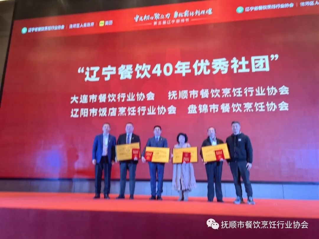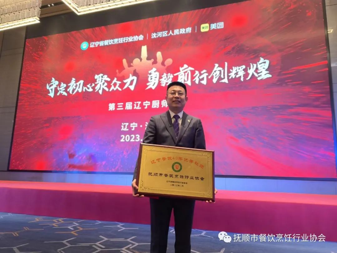 2023年2月28日,由辽宁省餐饮烹饪行业协会和沈河区人民政府共同举办的辽宁省第三届厨师节在沈阳万豪大酒店隆重举行,辽宁省商务厅副厅长郭斌同志讲话并对餐饮行业发展提出四点建议,沈河区区长石国琦同志全面推介区域大融合的前景和优势、省餐饮烹饪行业协会会长崔韬同志热情似火的致词坚定了大家在新时期发展餐饮的信心,特别是省社会科学院副院长梁启东博士作的:让“烟火气”在大街小巷升腾的主题演讲,受到大家的一致好评;在随后进行的辽宁省餐饮烹饪行业协会成立四十周年颁奖典礼上,抚顺市餐饮烹饪行业协会荣获”优秀社团”奖,执行会长赵才同志荣获“资深级功勋人物”奖,协会会长杨绪森、秘书长李开亮荣获“杰出人物”奖,抚顺市餐饮烹饪行业协会副会长郑向斌、赵毅、高群朋、胡艳玲、关萤荣获“优秀企业家”奖,辛毅荣获金厨奖,抚顺餐饮行业代表团今天是收获满满,获奖多多,是丰收的一天。