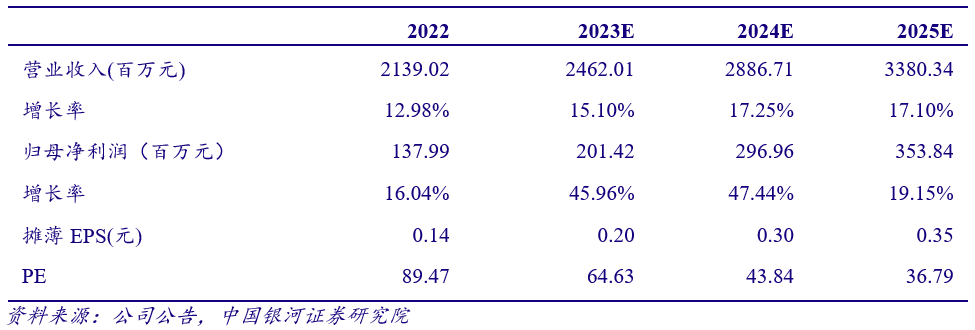 根据公告,调整盈利预测。预计23-25年归母净利润为2.01/2.97/3.54亿元,同比+46.0%/47.4%/19.2%,对应EPS为0.2/0.3/0.35元,对应PE为65/44/37X,公司23年PE高于调味品行业平均水平,维持“谨慎推荐”评级。