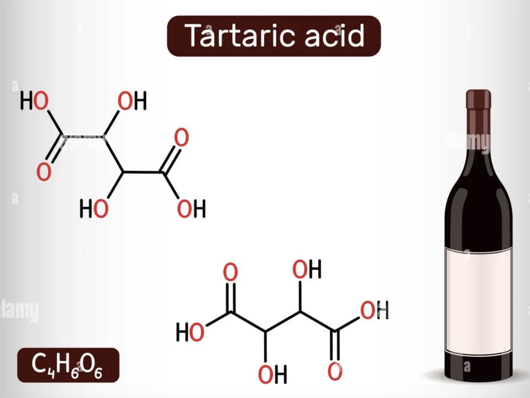 这些晶状的物质是葡萄酒中酒石酸(Tartaric Acid)的结晶体,也被叫做酒石。酒石酸是葡萄酒中重要的组成部分,葡萄酒的酸度很重要,是评估一款葡萄酒口感和陈年潜力的重要考虑要素之一。而组成葡萄酒酸度的成分主要就是酒石酸、苹果酸(Malic Acid),柠檬酸(Citric Acid)和乳酸(Lactic Acid),其中酒石酸、苹果酸和柠檬酸是本来就存在于葡萄中的,而酒石酸含量是最高的。