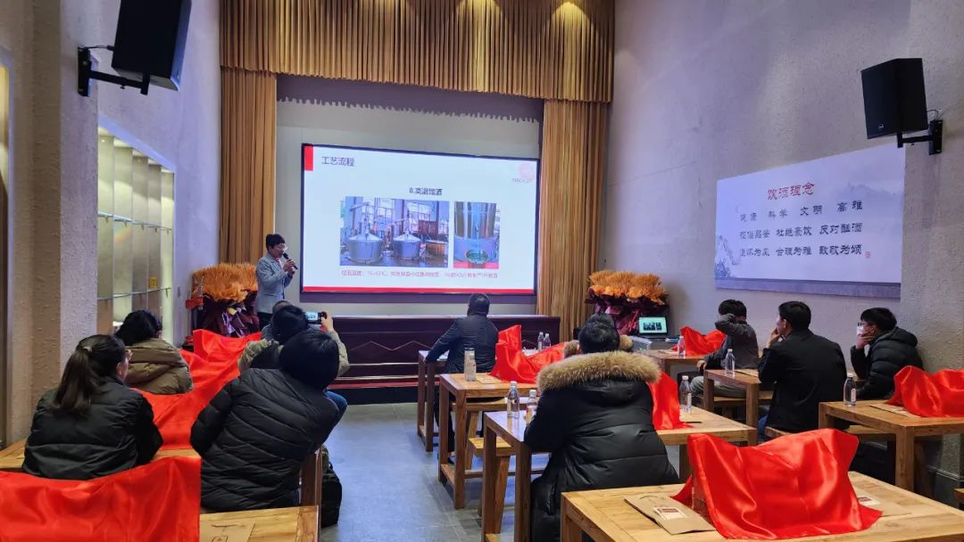 在交流座谈中,总经理王建伟向大家介绍了秦池酒业发展历史和转型升级、龍琬商标的由来、秦池酒产品特点和明星产品、酿造工艺等。双方探讨了企业发展中遇到的问题,相互学习了各方先进经验,为进一步深化合作奠定了基础。