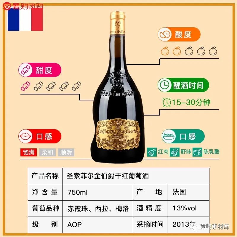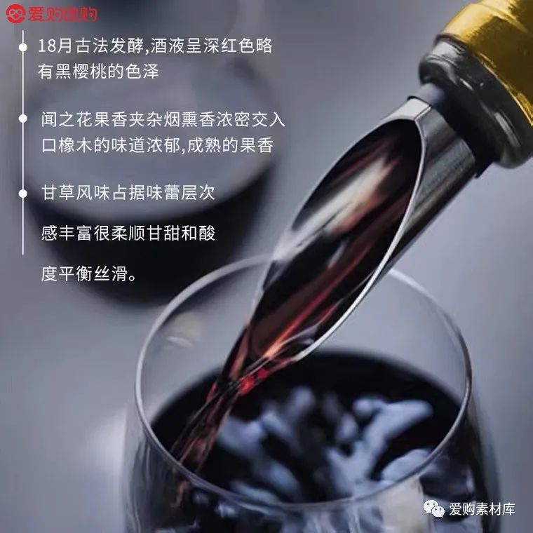 18月古法发酵,酒液呈深红色略有黑樱桃的色泽