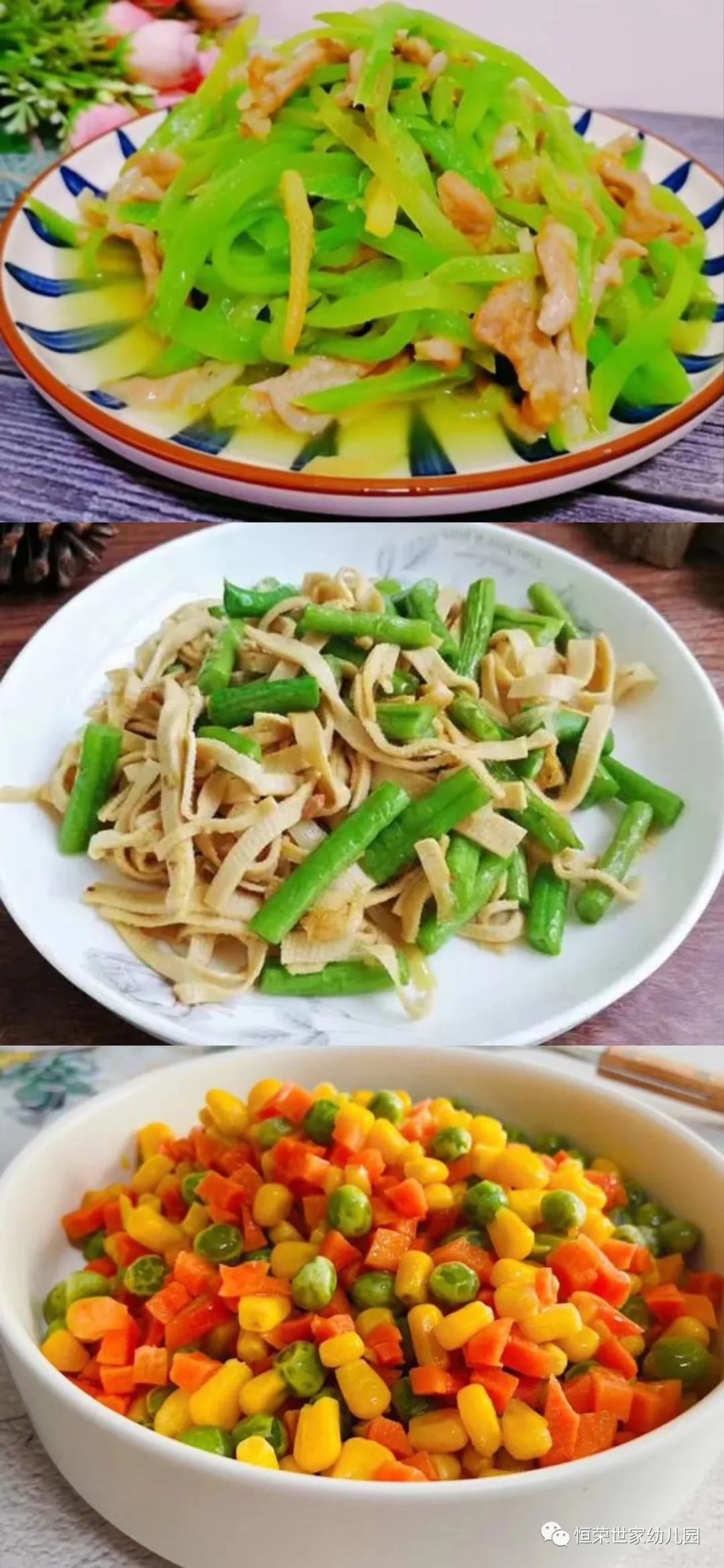 营养午餐:莴苣炒肉丝 豆角烧百叶