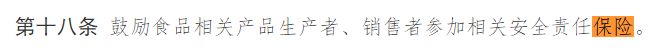 《办法》“第二章 生产销售 第十八条”提到:鼓励食品相关产品生产者、销售者参加相关食品安全责任保险。随着老百姓的维权意识不断提高,我们身边的食品生产企业、食品加工企业、食品运输企业,都普遍投保了食品安全责任险,大小饭店、宾馆、餐馆、食堂等也逐步增强了保险意识,也在纷纷主动给自己的餐厅上一道保险。