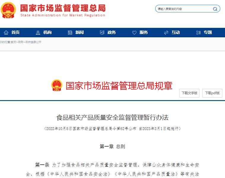 2022年10月,国家市场监管总局发布《食品相关产品质量安全监督管理暂行办法》,将于2023年3月1日起施行。《办法》提出鼓励投保相关食品安全责任保险。