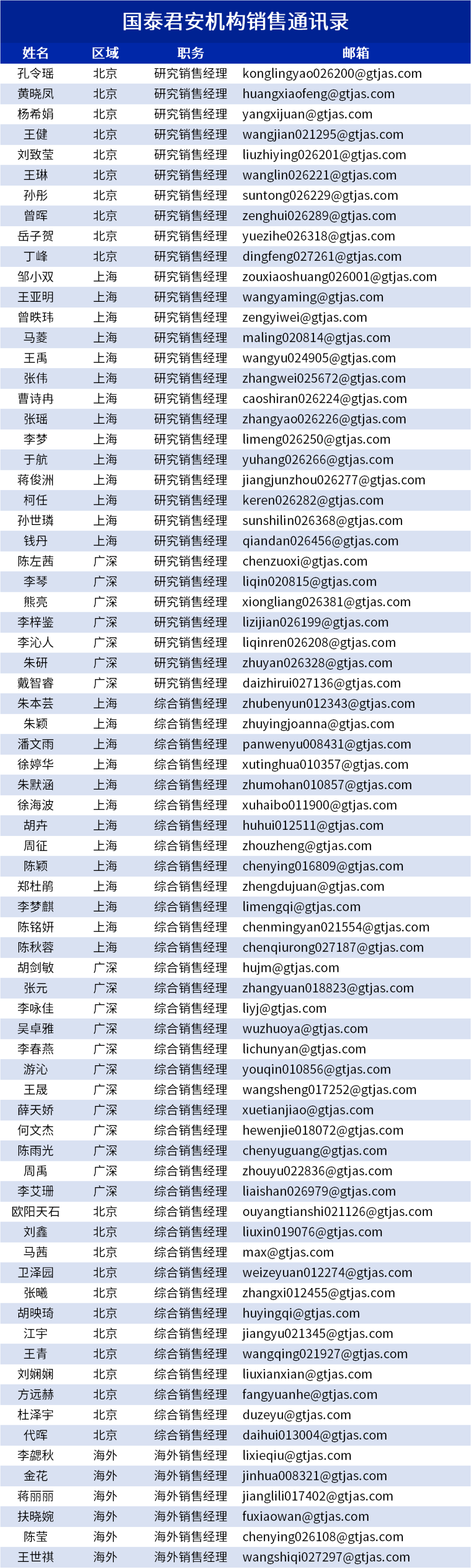本订阅号所载内容仅面向国泰君安证券研究服务签约客户。因本资料暂时无法设置访问限制,根据《证券期货投资者适当性管理办法》的要求,若您并非国泰君安证券研究服务签约客户,为保证服务质量、控制投资风险,还请取消关注,请勿订阅、接收或使用本订阅号中的任何信息。我们对由此给您造成的不便表示诚挚歉意,非常感谢您的理解与配合!如有任何疑问,敬请按照文末联系方式与我们联系。