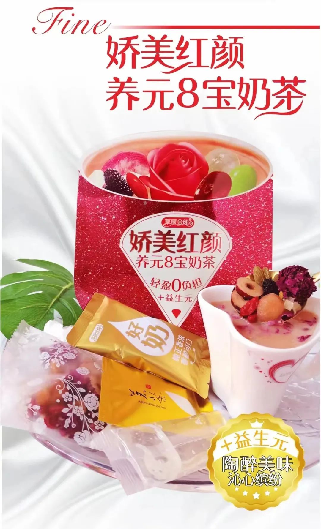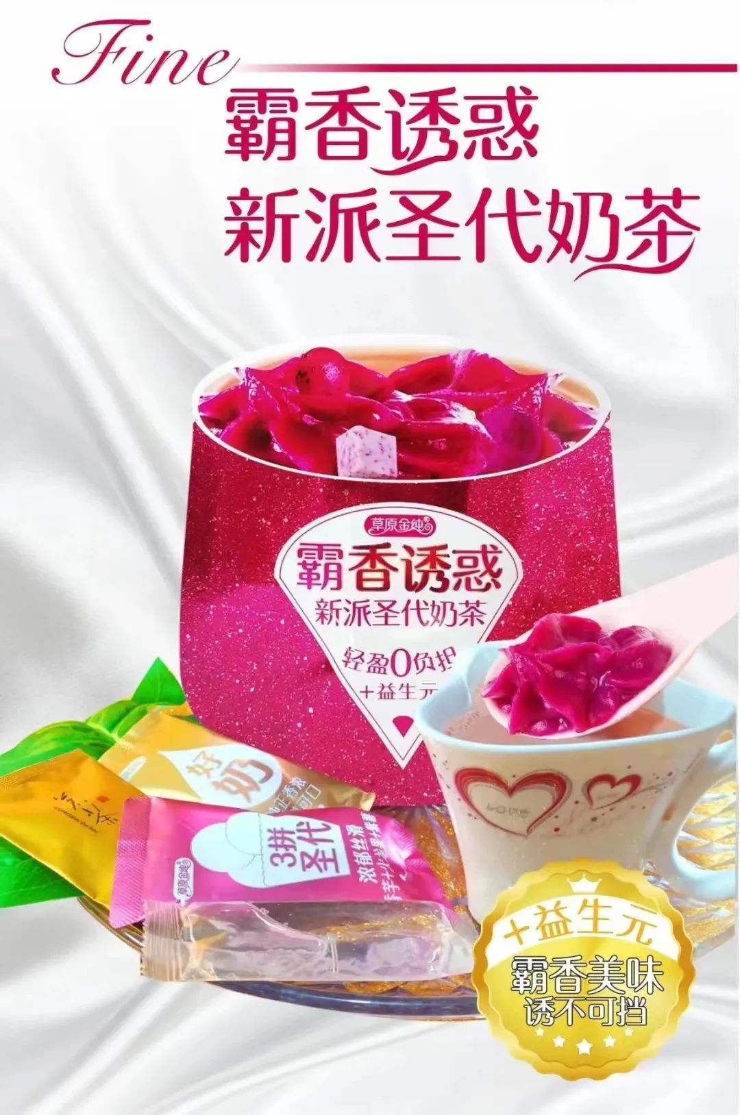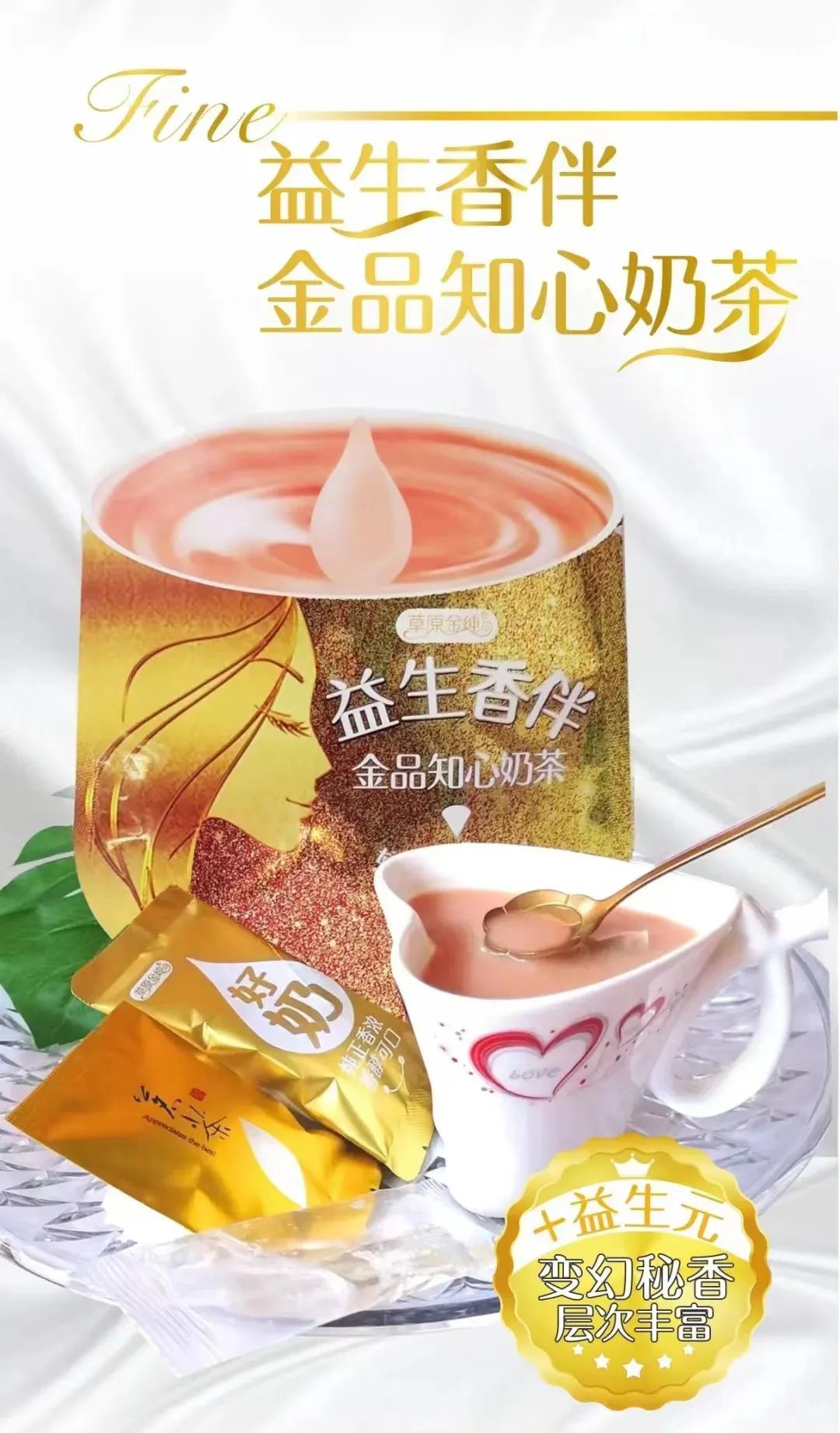 产品简介:草原金纯,多年探索研发,成就经典品质,与众不同:异形袋新颖包装、4款口味奶茶、有吃有喝丰富搭配、味道惊喜时尚,特别吸引奶茶类产品需求人群。