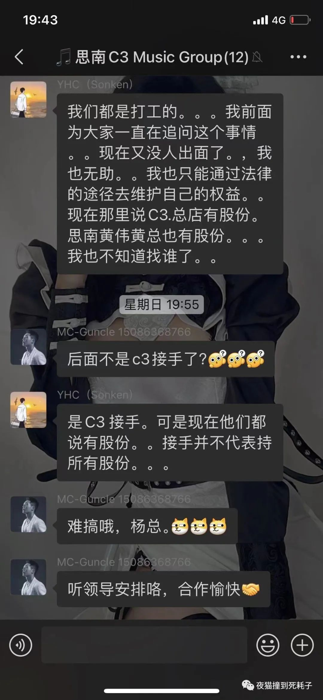 12号 由铜仁市c3总店接手说的说吧思南c3黄伟黄总的股份收回大部分 我们的工资现在由铜仁c3总店来发放我的工资