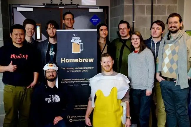 Homebrew 团队合影,包括 “冒泡啤酒” —— 项目负责人 Mike McQuaid
