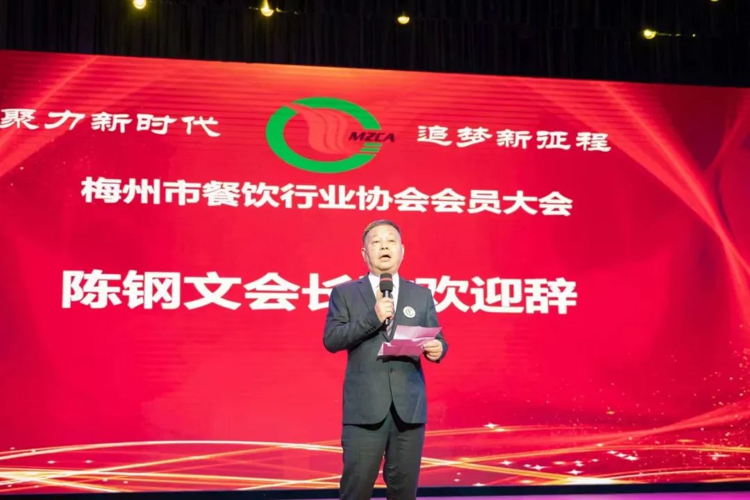 陈钢文会长在致辞中代表梅州市餐饮行业协会对各位嘉宾的到来表示感谢!他表示协会将一如既往的按照市委、市政府的各项工作部署和要求,落实好经济社会发展的各项举措,不断助力巩固餐饮业稳中向好的良好局面,积极推进餐饮企业转型升级,有效引导餐饮企业健康发展,快速提升会员企业的服务水平,大力推动行业的规范化、现代化、品牌化建设,为梅州市餐饮行业的高质量发展而努力奋斗!