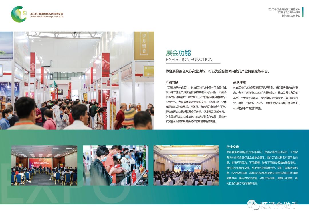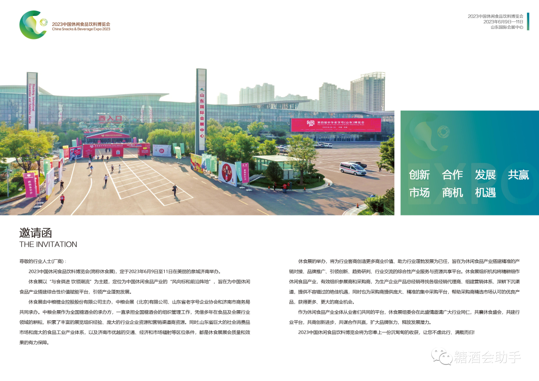 休食展定位为休闲食品产业全体从业者们共同的平台,组织机构衷心邀请广大媒体朋友和行业同仁,参与休闲食品展的共同建设,共同分享平台带来的商业机会和价值。中国休闲食品饮料博览会与北方消博会双展联办,必将带来双重经济效益和人气飙升。6月9日我们将在美丽泉州相聚,为休闲食品行业注入新动能。糖酒会助手微信公众号。