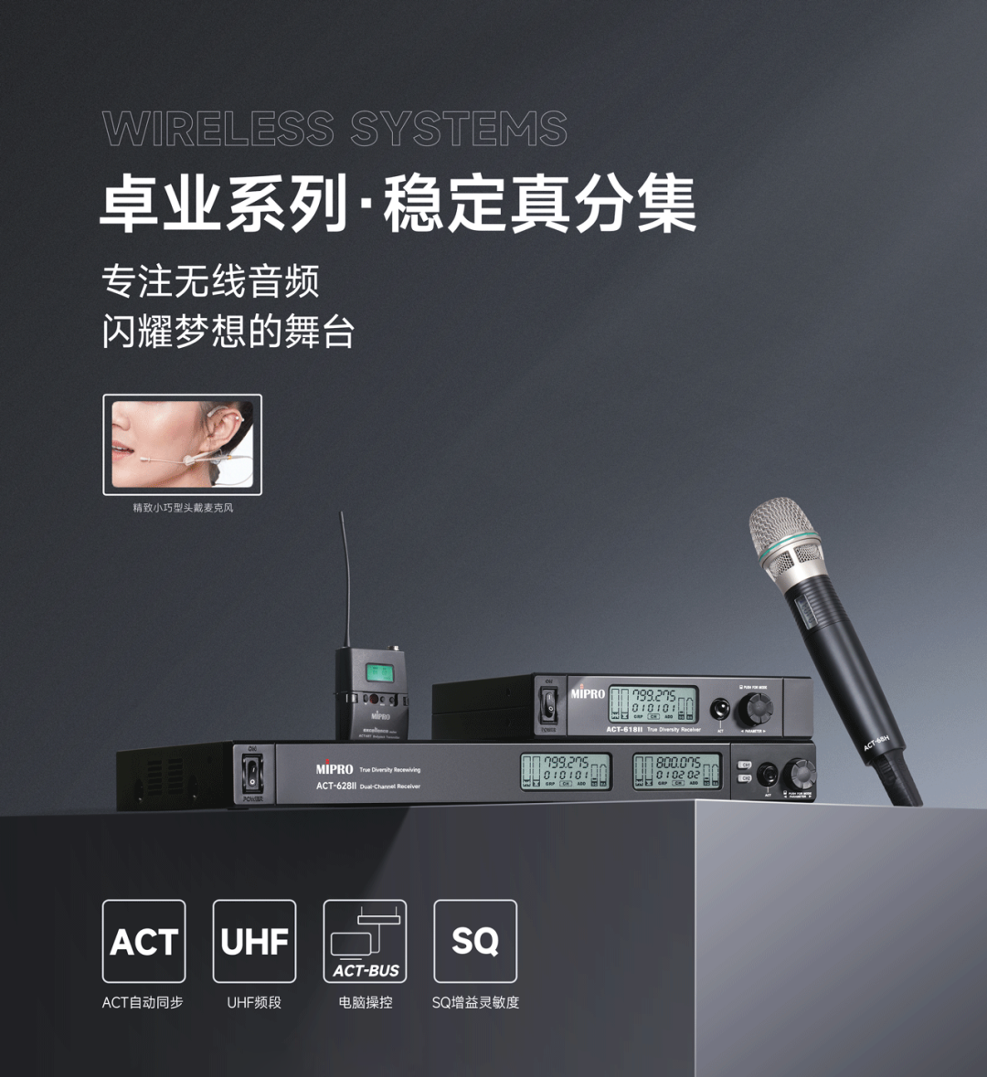 本次展出的产品从话筒、公共广播系统、乐器无线传输系统到天线系统等,让您能全面了解MIPRO全套专业无线音频解决方案。