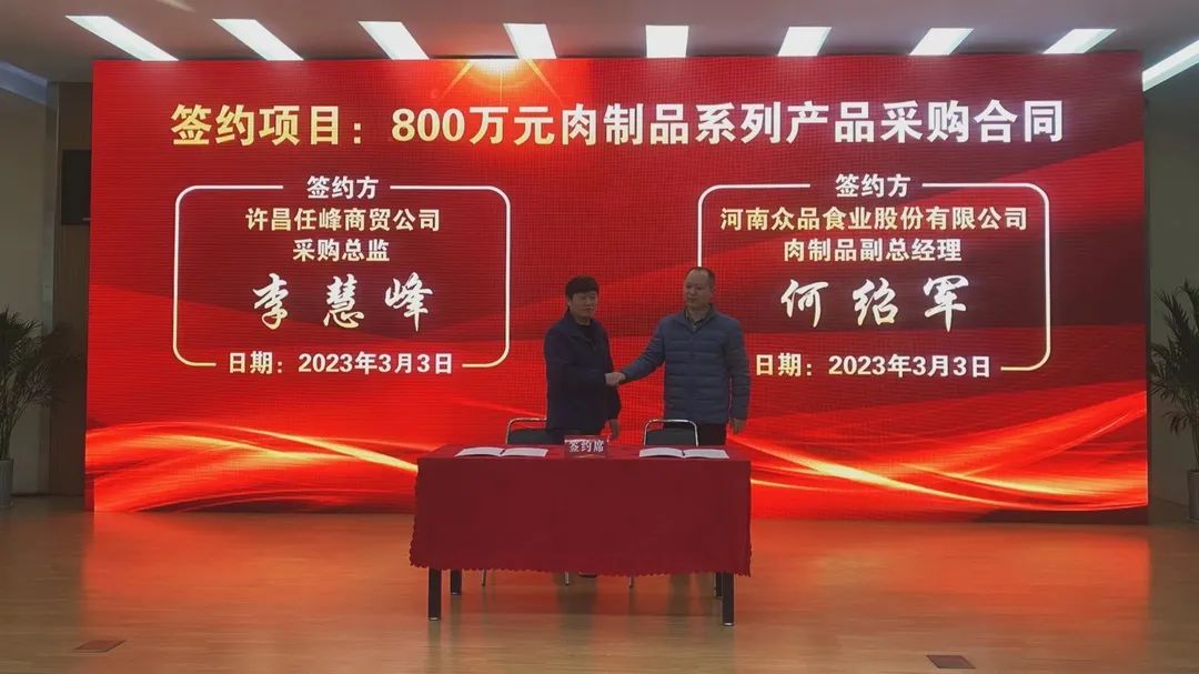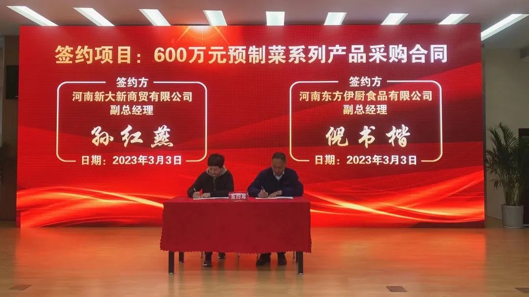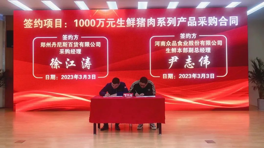 活动现场,公司生鲜品、肉制品、东方伊厨等事业部、专业公司代表分别与郑州丹尼斯百货公司、许昌任峰商贸公司、河南新大新商贸有限公司签订产品采购合同。