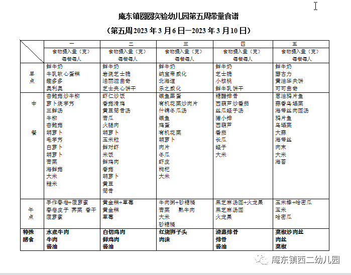 【“食”刻相伴】庵东圆圆实幼集团|第五周食谱