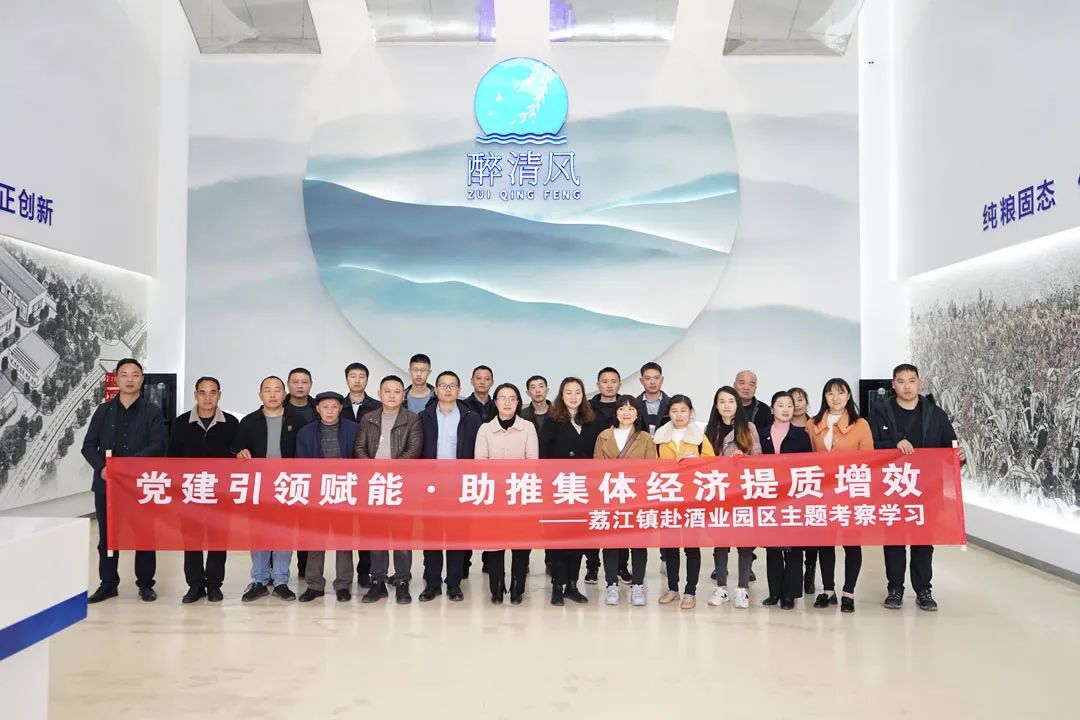 2月28日下午,合江县荔江镇村社干部代表一行到访醉清风公司,实地参观公司数字化酿酒车间,醉清风公司副总经理车经纬、黄志久陪同参加交流。