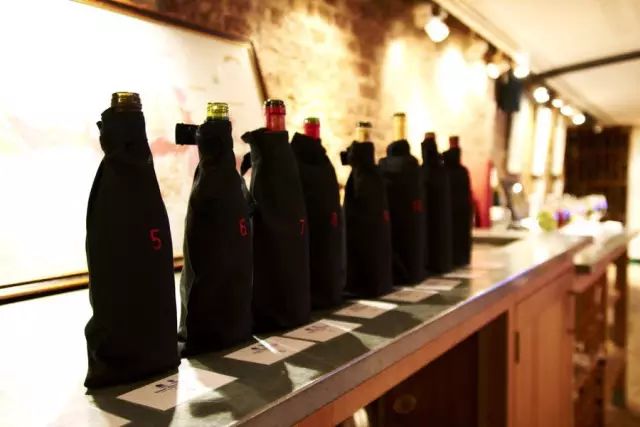 一瓶瓶被蒙住酒标的葡萄酒摆在桌上,使得参加盲品的人不能通过酒标得知葡萄酒的基本信息。