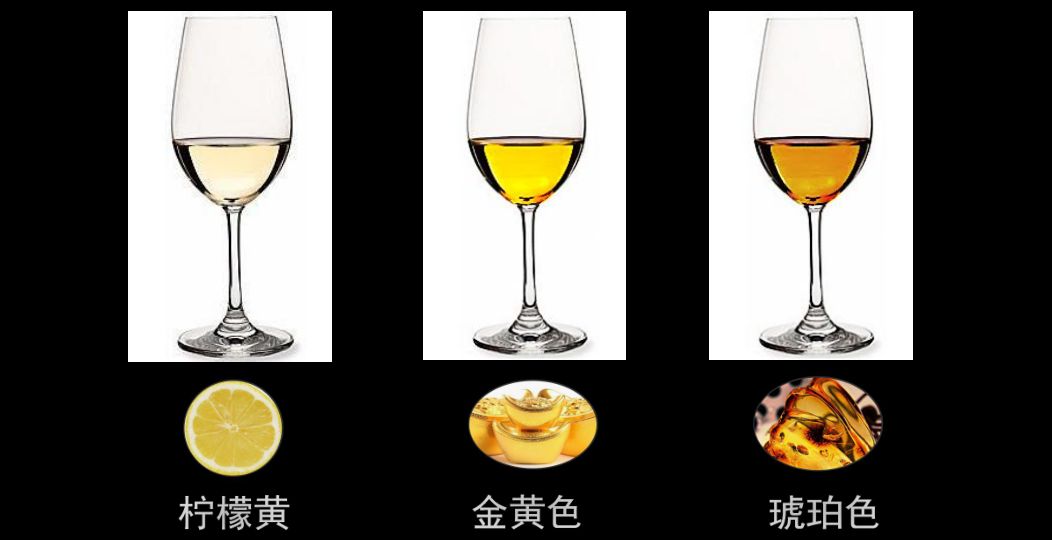 色泽由柠檬黄变成金黄色再到琥珀色。