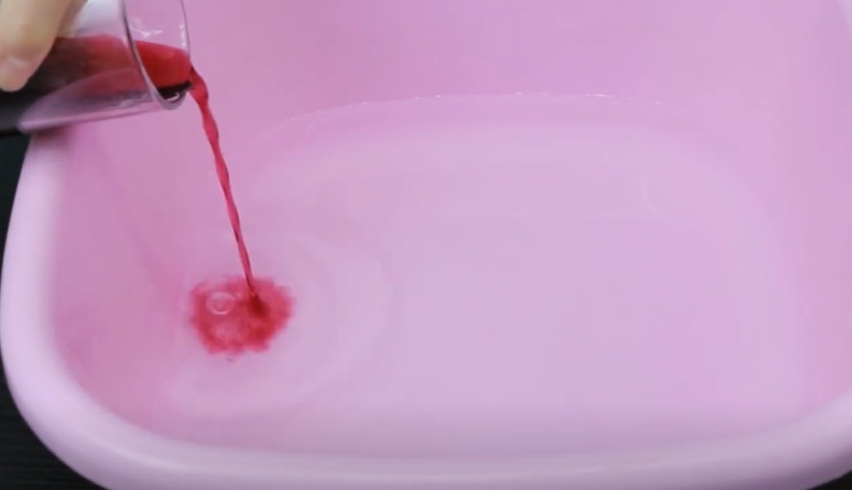 我们准备一盆清水往里面倒入葡萄酒,可以适量的多倒一点,我们搅拌一下。